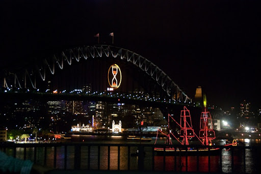 We watched the famous Sydney Fireworks this time from the Cahill Expressway (on top of Circular Quay Station). The RTA closed down the Expressway and turned it into a giant viewing platform with the best views of the Harbour Bridge and Sydney Harbour. The centrepiece of the display was a giant hour glass, a fitting symbol for our New Year's theme 'The Time of our Lives'.